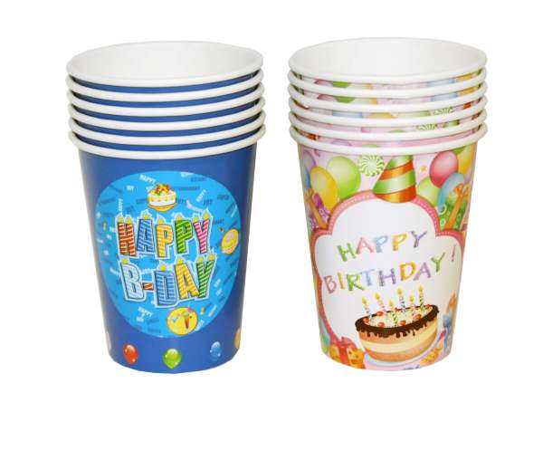 Pappmugg 250ml 6-p Happy Birthday (Blå)